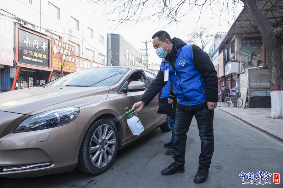 工作人員對過往車輛進行消毒。中國雄安官網(wǎng)記者牛思佳 攝