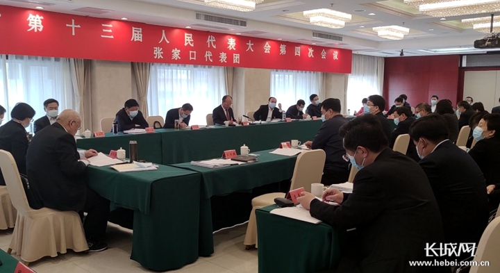 張家口代表團(tuán)的代表們正在審議。長(zhǎng)城網(wǎng)記者 趙嬌瑩 攝