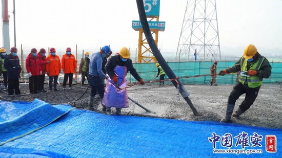建設(shè)單位中國雄安集團生態(tài)建設(shè)公司把該項目作為一號工程,在新區(qū)黨工委、管委會和雄安集團領(lǐng)導(dǎo)下,認(rèn)真貫徹落實河北省委、省政府決策部署,全力保質(zhì)量、保進度、保安全、保成本、保廉潔,堅決完成建設(shè)施工任務(wù)。施工單位北京城建集團于2020年12月4日收到中標(biāo)通知書后,克服了時間緊、任務(wù)重以及冬季施工難度大等困難,發(fā)揚鐵軍精神,僅用2個多月時間就完成春節(jié)前主體結(jié)構(gòu)封頂?shù)募榷ㄈ蝿?wù)。