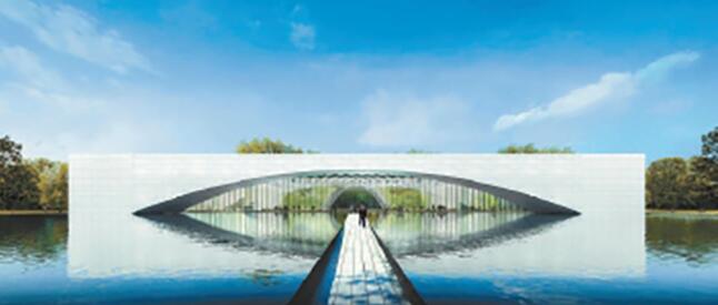 從項目效果圖上不難看出,該中心主體建筑猶如一塊晶瑩剔透的方石鑲嵌在湖面上,方石下面弧形正門,與湖面的倒影構(gòu)成一只眼睛,因此,也被稱為雄安“數(shù)字城市之眼”。