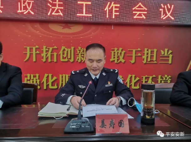 安新縣委常委、政法委書記杜建強(qiáng)出席會(huì)議并講話,副縣長(zhǎng)、公安局長(zhǎng)姜壽國主持會(huì)議,縣人民法院院長(zhǎng)許宏杰、縣人民檢察院檢察長(zhǎng)焦國宏出席會(huì)議。