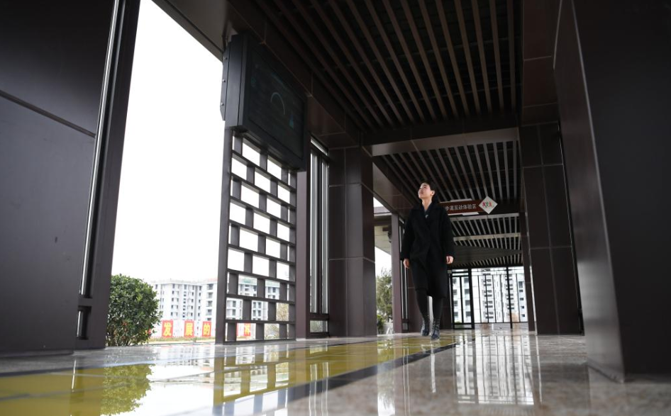 劇村站工作人員在壓力發(fā)電步道體驗(yàn)區(qū)進(jìn)行展示。(新華社記者朱旭東 攝)