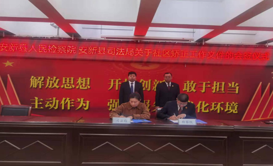 安新縣人民檢察院與安新縣司法局舉行社區(qū)矯正工作文件會(huì)簽儀式