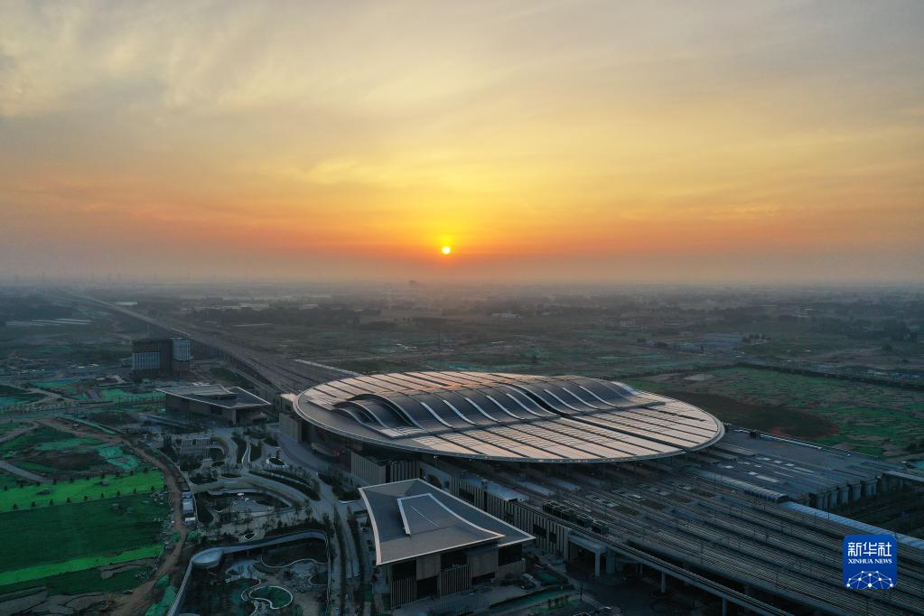 這是京雄城際鐵路雄安站(2021年7月1日攝,無人機(jī)照片)。新華社記者牟宇 攝