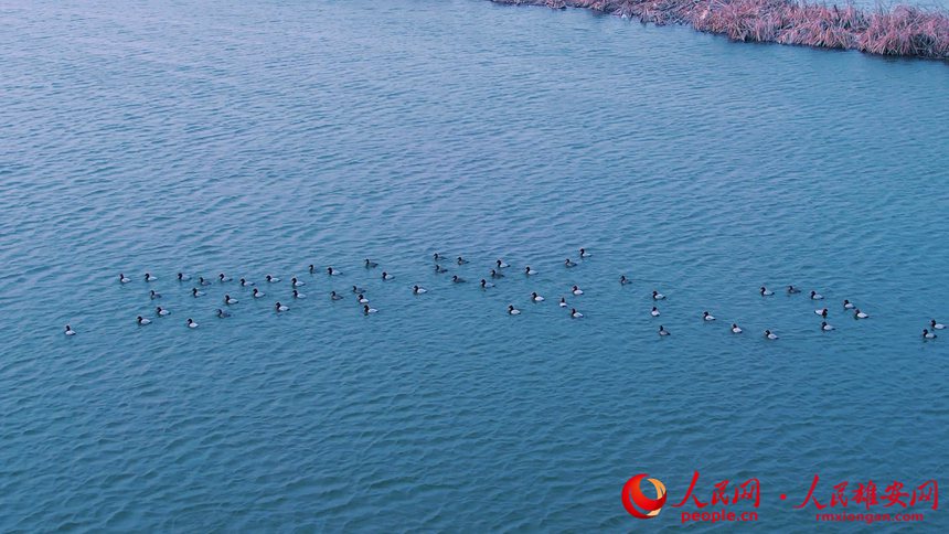 人民網(wǎng)雄安3月24日電 “春江水暖鴨先知。”一到春天,大批候鳥陸續(xù)抵達(dá)白洋淀,開始筑巢產(chǎn)卵、孵化育雛,11月份再遷徙到南方避寒越冬。日前,在白洋淀水域拍攝到遷徙歸來的國家一級(jí)保護(hù)動(dòng)物青頭潛鴨,鳳頭鸊鷉和大種群的國家“三有”保護(hù)動(dòng)物紅頭潛鴨、白骨頂雞,它們?cè)诘碇袝秤巍㈡覒?、追逐、覓食,萌態(tài)十足。