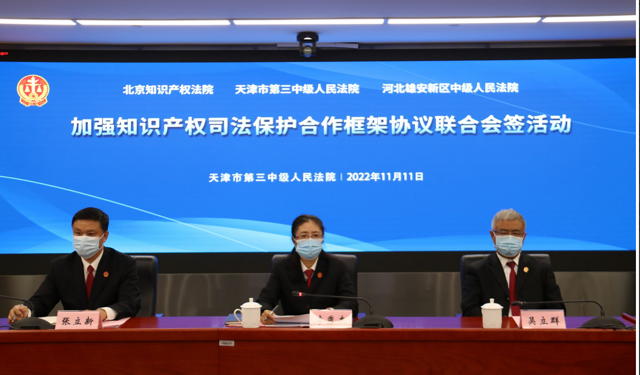 黨的二十大報(bào)告明確提出“加強(qiáng)知識產(chǎn)權(quán)法治保障,形成支持全面創(chuàng)新的基礎(chǔ)制度”,同時(shí)提出“促進(jìn)區(qū)域協(xié)調(diào)發(fā)展”并將“推進(jìn)京津冀協(xié)同發(fā)展”擺在首位。11月11日,北京知識產(chǎn)權(quán)法院與天津市第三中級人民法院、河北雄安新區(qū)中級人民法院共同簽署《加強(qiáng)知識產(chǎn)權(quán)司法保護(hù)合作框架協(xié)議》,深入貫徹落實(shí)黨的二十大精神和黨中央決策部署,開啟京津冀知識產(chǎn)權(quán)協(xié)同保護(hù)事業(yè)新征程,為京津冀協(xié)同發(fā)展和國家創(chuàng)新驅(qū)動(dòng)發(fā)展戰(zhàn)略實(shí)施作出新的更大貢獻(xiàn)。