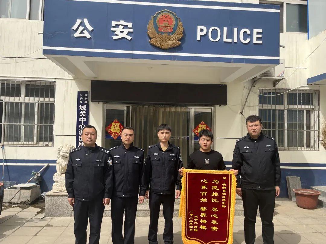 4月11日上午,武先生來到雄安新區(qū)公安局交巡特支隊(duì),將一面寫有“事故無情人有情 助人為樂顯真情”字樣的錦旗送到留置保障大隊(duì)隊(duì)員劉沖手中。