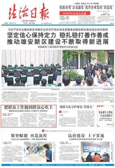 據(jù)《法治日?qǐng)?bào)》記者了解,近年來(lái),雄安新區(qū)一手抓陣地建設(shè),一手建體制機(jī)制,一手提服務(wù)水平,三管齊下打造群眾工作的“雄安樣板”。