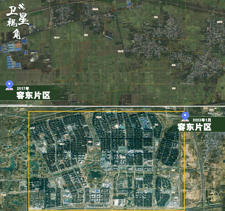 6年前還是典型傳統(tǒng)村落模樣的容東片區(qū),如今棟棟樓宇拔地而起,條條街巷平坦寬闊。