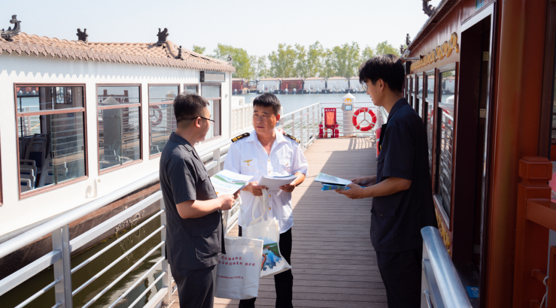 干警們還走進(jìn)碼頭、游客服務(wù)中心、船艙等,選取白洋淀流域集中管轄以來(lái)兩級(jí)法院審理的非法捕撈水產(chǎn)品、非法排污等典型案例進(jìn)行以案說(shuō)法,深入淺出地講解了破壞生態(tài)環(huán)境帶來(lái)的嚴(yán)重后果以及需要承擔(dān)的法律責(zé)任,呼吁現(xiàn)場(chǎng)游客從身邊小事做起,做白洋淀流域環(huán)境保護(hù)的宣傳者、倡導(dǎo)者、行動(dòng)者。并結(jié)合刑法、環(huán)境保護(hù)法等法律法規(guī),解答現(xiàn)場(chǎng)群眾和游客們提出的環(huán)境保護(hù)相關(guān)法律問(wèn)題。