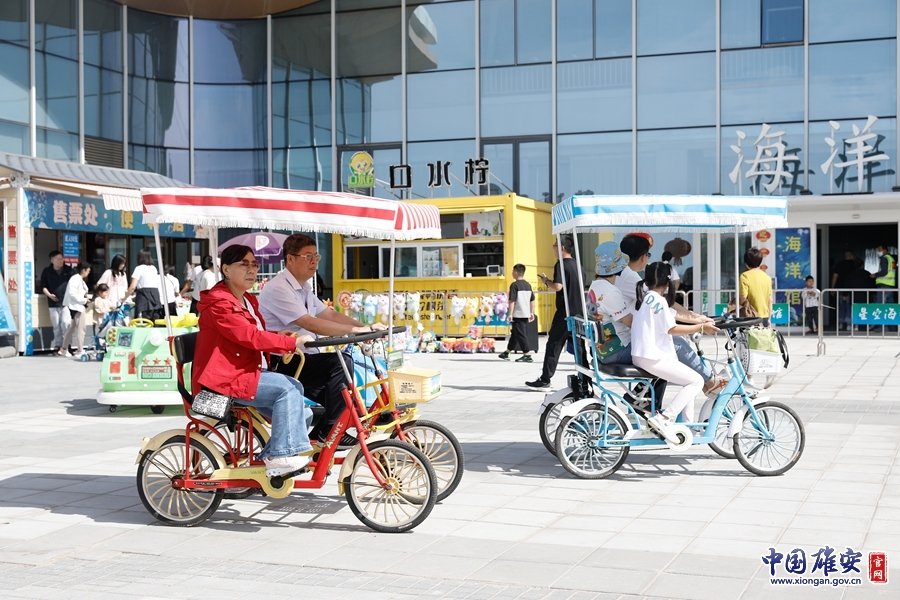 游客乘坐觀光自行車(chē)在園內(nèi)游玩。中國(guó)雄安官網(wǎng)毛鶴然 攝