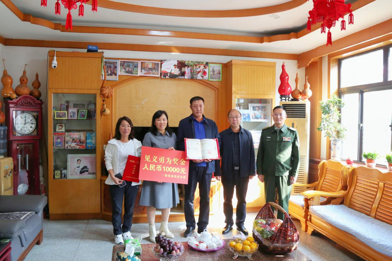日前,在海軍某部服役的河北省雄安新區(qū)雄縣籍現(xiàn)役軍人趙磊,被家鄉(xiāng)雄縣人民政府授予“見義勇為先進(jìn)個(gè)人”榮譽(yù)稱號(hào)。雄縣相關(guān)領(lǐng)導(dǎo)專程到“見義勇為先進(jìn)個(gè)人”趙磊家中走訪慰問,為趙磊親屬頒發(fā)了證書和獎(jiǎng)金。