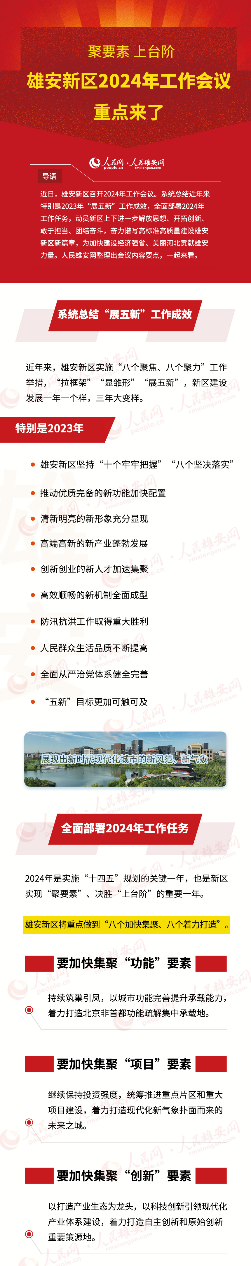 近日,雄安新區(qū)召開2024年工作會議。系統(tǒng)總結(jié)近年來特別是2023年“展五新”工作成效,全面部署2024年工作任務(wù),動員新區(qū)上下進一步解放思想、開拓創(chuàng)新、敢于擔(dān)當(dāng)、團結(jié)奮斗,奮力譜寫高標(biāo)準高質(zhì)量建設(shè)雄安新區(qū)新篇章,為加快建設(shè)經(jīng)濟強省、美麗河北貢獻雄安力量。人民雄安網(wǎng)整理出會議內(nèi)容要點,一起來看。