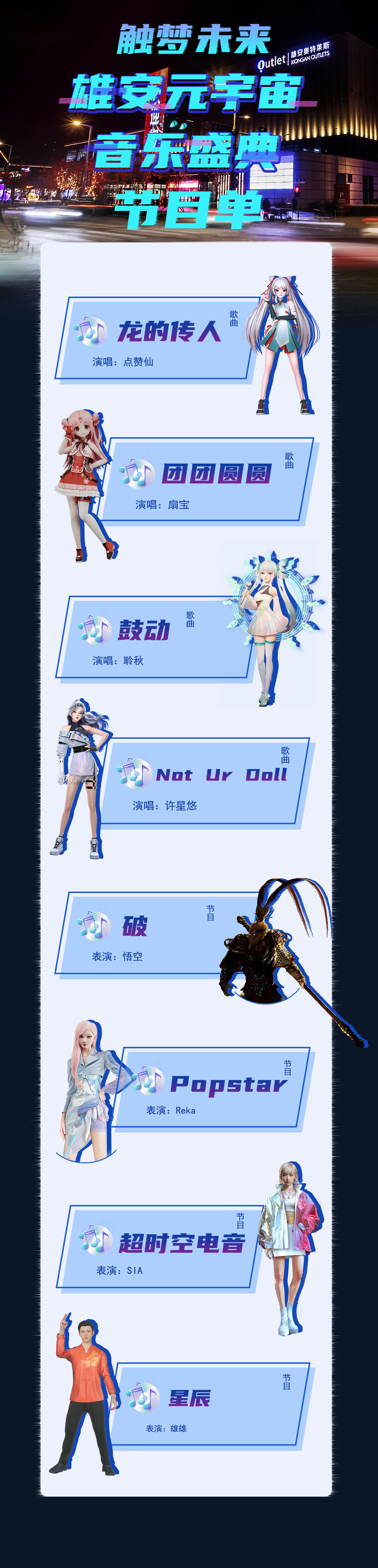 此次音樂花燈會活動分為“觸夢未來·雄安元宇宙音樂盛典”“雄安新區(qū)元宇宙元宵燈會”“人工智能體驗區(qū)”“文創(chuàng)展區(qū)”4大主題內(nèi)容。其中,“觸夢未來·雄安元宇宙音樂盛典”將于2月23日至25日每天19:00開場,本次音樂盛典將結(jié)合VR(虛擬現(xiàn)實)、AR(增強現(xiàn)實)、裸眼3D、數(shù)字虛擬主持人等前沿科技,突破傳統(tǒng)音樂會形式,帶給觀眾以沉浸式的音樂體驗。