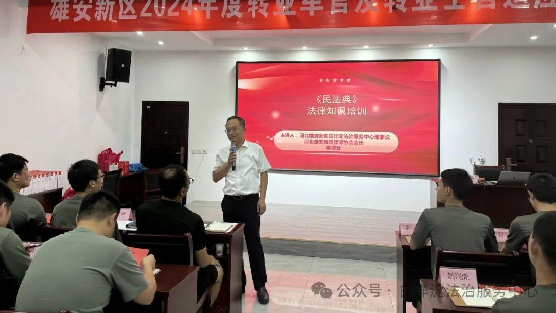 8月1日,河北雄安新區(qū)管理委員會公共服務(wù)局民政退役軍人組委托白洋淀法治服務(wù)中心為2024年度轉(zhuǎn)業(yè)軍、士官開展法治培訓。