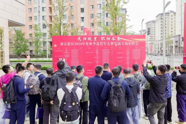 中國雄安官網(wǎng)9月21日電 為積極拓寬退役軍人就業(yè)渠道,幫助廣大退役軍人實現(xiàn)充分就業(yè),切實為退役軍人就業(yè)創(chuàng)業(yè)提供精準服務,讓退役軍人更好地為地方經(jīng)濟社會發(fā)展貢獻力量,9月20日下午,由河北雄安新區(qū)管理委員會公共服務局主辦,雄安人才發(fā)展集團有限公司承辦,雄縣退役軍人事務局、容城縣退役軍人事務局、安新縣退役軍人事務局協(xié)辦的雄安新區(qū)2024年度秋季退役軍人暨軍屬專場招聘會在雄安人力資源服務產(chǎn)業(yè)園成功舉辦。