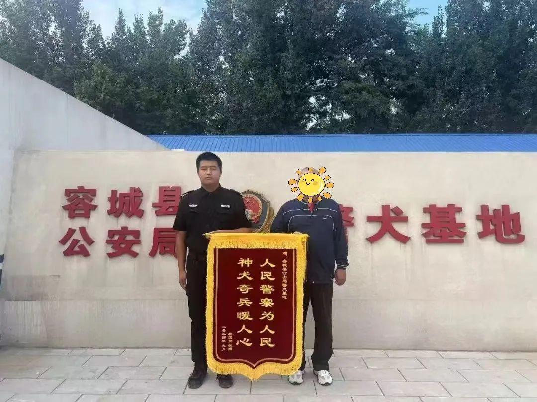 幾日后,報警人李先生將一面印有“人民警察為人民 神犬奇兵暖人心”的錦旗送到了警犬基地民警手中,對民警和警犬“路虎”認真負責(zé)的工作態(tài)度連聲稱贊。