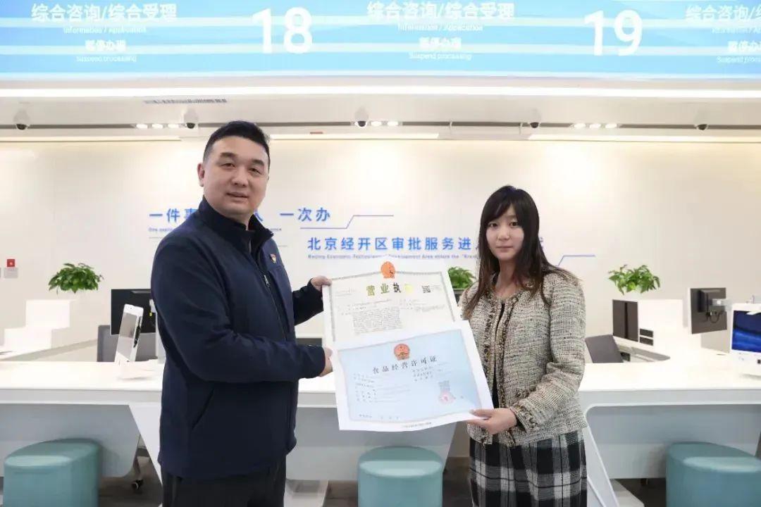 辦事群眾在北京經(jīng)開(kāi)區(qū)政務(wù)服務(wù)中心領(lǐng)取證照。