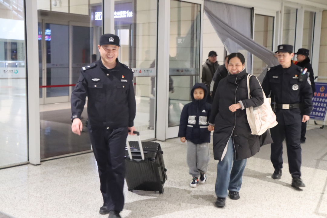 “請看管好個(gè)人行李和財(cái)物,照看好孩子,人多擁擠,注意安全......”張乃驍提醒過往旅客?!澳?,我得同時(shí)照看老人和孩子,可以幫忙拿一下行李嗎?”一位女士很不好意思地說道?!澳蜌饬?,我?guī)銈冞M(jìn)候車室?!睆埬蓑斀舆^行李,帶領(lǐng)旅客向進(jìn)站口走去。
