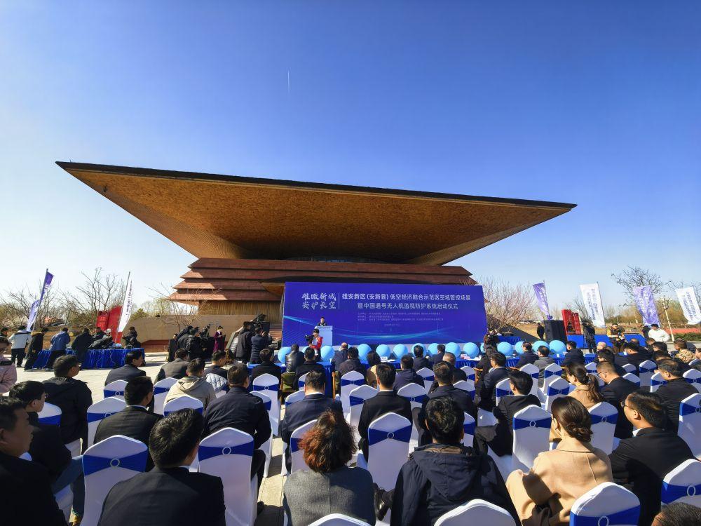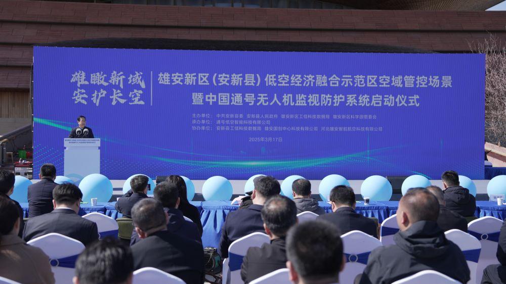 雄安新區(qū)(安新縣)低空經(jīng)濟(jì)融合示范區(qū)空域管控場(chǎng)景暨中國(guó)通號(hào)無(wú)人機(jī)監(jiān)視防護(hù)系統(tǒng)啟動(dòng)儀式現(xiàn)場(chǎng)。(受訪單位供圖)