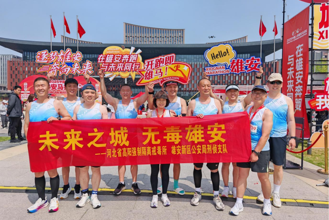 在賽道上,還有一支格外引人注目的隊伍,那就是新區(qū)公安局刑偵支隊聯合河北高陽強制隔離戒毒所民輔警、社會志愿者、在校大學生等群體組成的“雄安新區(qū)禁戒毒公益跑團”。他們身著統(tǒng)一服裝,向周圍的選手和觀眾傳遞“健康人生,綠色無毒”理念,為這場盛大的賽事增添了一抹靚麗的色彩。