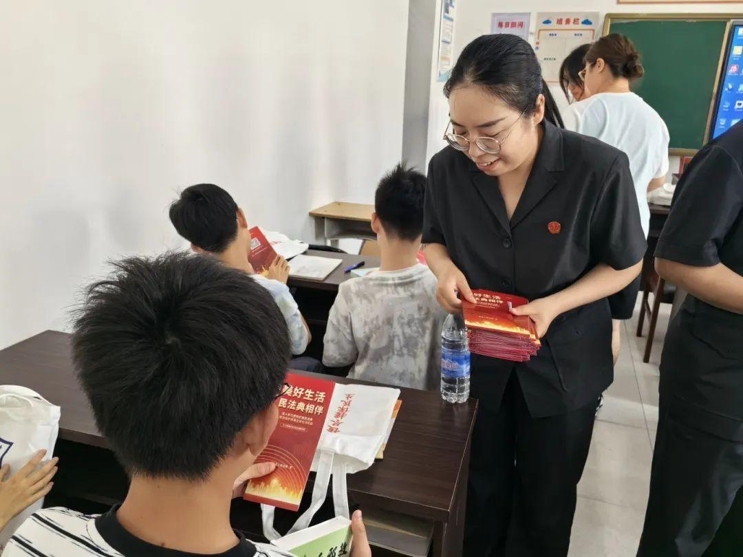 活動中,雄安站樞紐片區(qū)人民法庭法官助理、法治副校長肖陽以通俗易懂的語言,以案說法的形式,從校園欺凌、網(wǎng)絡(luò)暴力、人身權(quán)利、未成年人犯罪等內(nèi)容切入,結(jié)合《中華人民共和國民法典》《中華人民共和國未成年人保護法》《中華人民共和國預(yù)防未成年人犯罪法》以及《中華人民共和國刑法》中保護未成年人權(quán)益和未成年人犯罪的相關(guān)法律法規(guī),深入淺出剖析了校園欺凌的危害性和法律后果,教育大家不做欺凌者、不做受害者、也不做旁觀者,自覺抵制校園欺凌,勇敢拿起法律武器保護自己。活動尾聲,法院干警們還為學(xué)生們發(fā)放了精心準(zhǔn)備的民法典、未成年人保護法等宣傳資料,希望同學(xué)們和家長們課后能繼續(xù)深入學(xué)習(xí)法律知識。
