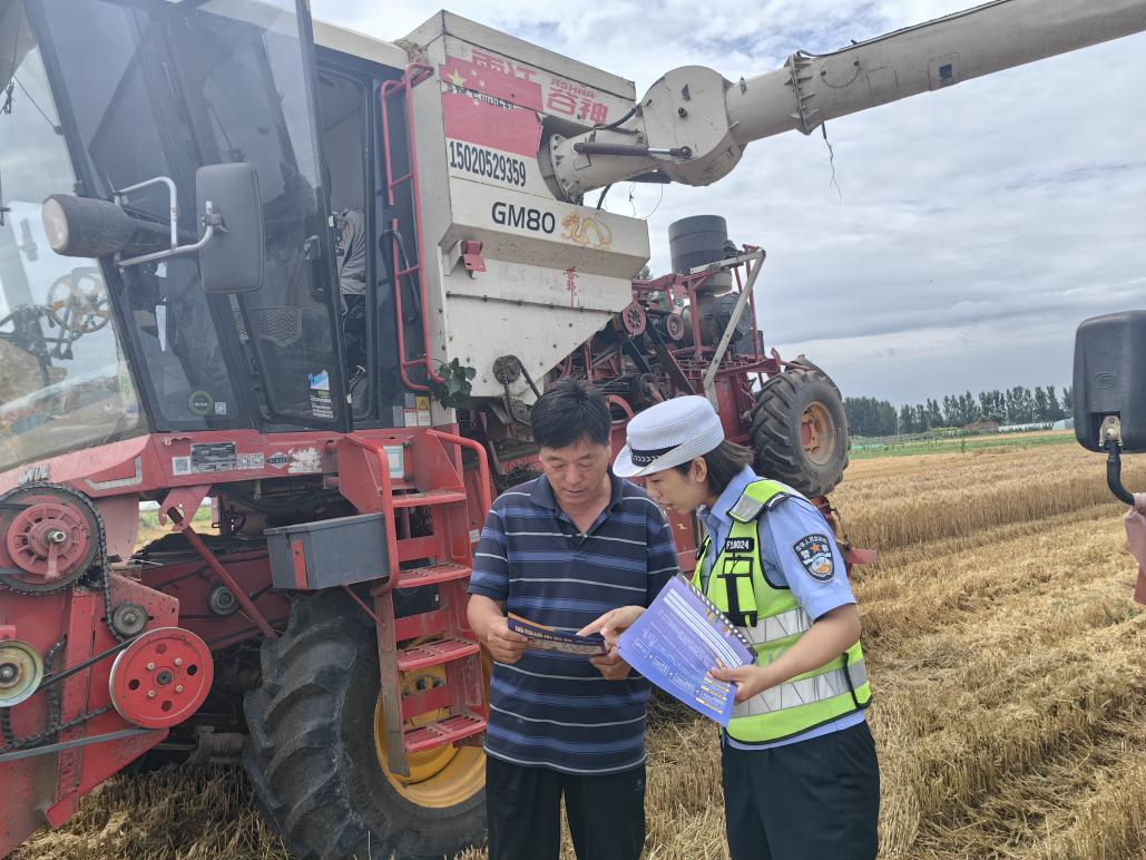 “農(nóng)忙時(shí)節(jié)大家都很辛苦,但千萬(wàn)不能忽視交通安全?!睆堁梢贿呥f上印著一盔一帶、嚴(yán)禁酒駕醉駕以及電動(dòng)三四輪車(chē)安全提示的宣傳單頁(yè),一邊送上溫馨提醒,“天氣炎熱容易疲勞,開(kāi)車(chē)前要保證充足的睡眠,不要疲勞駕駛。另外,收割機(jī)等農(nóng)機(jī)具在作業(yè)前要仔細(xì)檢查,確保車(chē)輛的制動(dòng)、燈光等安全部件性能良好,可不能開(kāi)帶病車(chē)上路。”