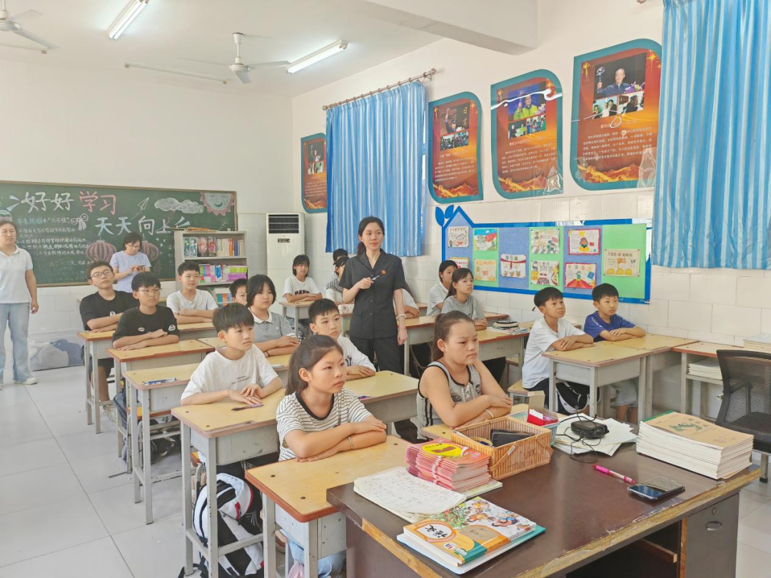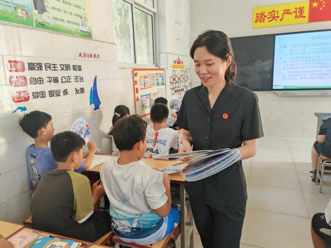 “說不!”“告訴老師!”“尋求幫助!”——孩子們舉起小手爭先恐后地回答,在歡聲笑語中學(xué)會(huì)了自我保護(hù)的知識(shí)。除了積極的互動(dòng),現(xiàn)場還為每位同學(xué)發(fā)放了未成年人司法保護(hù)品牌“雄小荷”主題宣傳扇。小小的扇子不僅送來清涼,更將法治清風(fēng)送入校園,將法治的種子播撒在每個(gè)孩子心中。