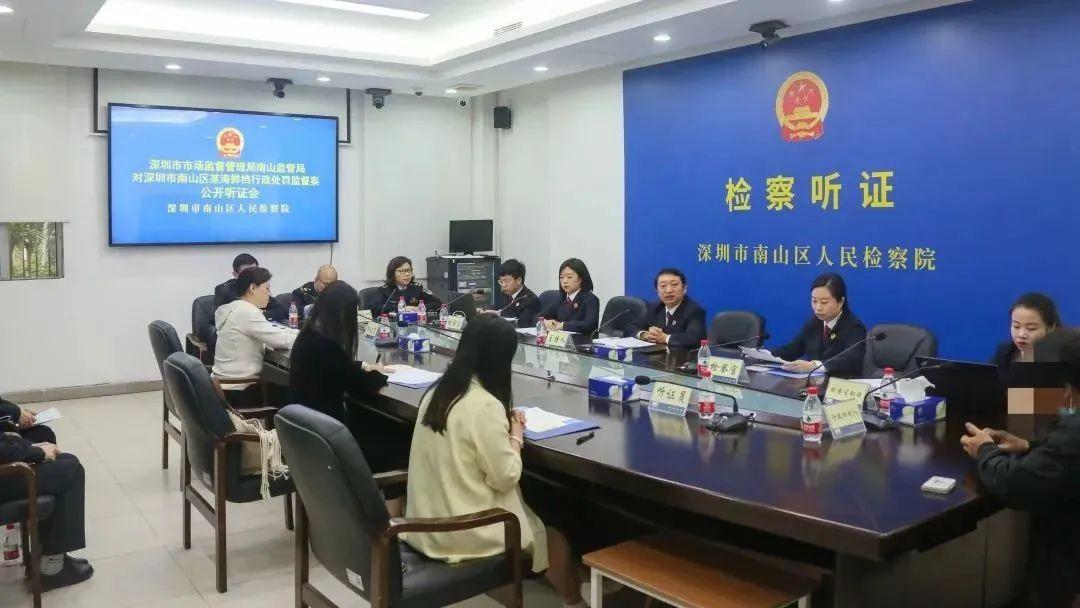 會議由南山區(qū)檢察院黨組成員、副檢察長孫偉主持,深圳市市場監(jiān)督管理局南山監(jiān)管局副局長張海濤及相關(guān)部門人員、行政相對人、承辦檢察官參加聽證會。