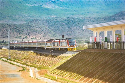 2019年10月16日,肯尼亞總統(tǒng)肯雅塔乘坐的列車(chē)駛?cè)雰?nèi)羅畢—馬拉巴標(biāo)軌鐵路(內(nèi)馬鐵路)一期工程麥馬修火車(chē)站。由中國(guó)企業(yè)承建的肯尼亞內(nèi)羅畢—馬拉巴標(biāo)軌鐵路(內(nèi)馬鐵路)一期工程當(dāng)日正式建成通車(chē)。新華社記者 李 琰攝