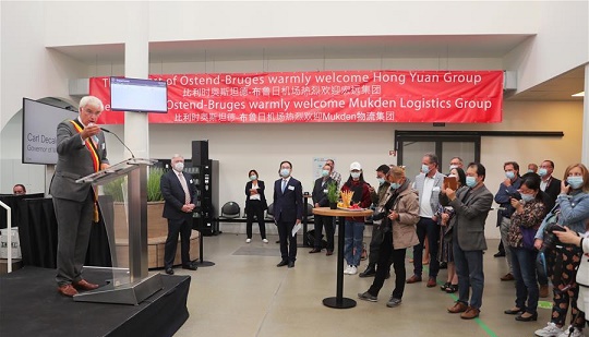 9月24日,在比利時奧斯坦德的奧斯坦德—布魯日機(jī)場,比利時西佛蘭德省省長卡爾·德卡呂韋在儀式上致辭。 比利時奧斯坦德—布魯日機(jī)場24日舉行隆重儀式,歡迎北京宏遠(yuǎn)集團(tuán)的貨運(yùn)航班正式入駐。這標(biāo)志著連接該機(jī)場與中國多地的“空中絲綢之路”新航線正式開通。 新華社記者 鄭煥松 攝