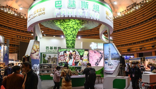 11月27日,在廣西南寧國際會展中心,消費(fèi)者在“一帶一路”國際展區(qū)選購商品。 新華社記者 張愛林 攝