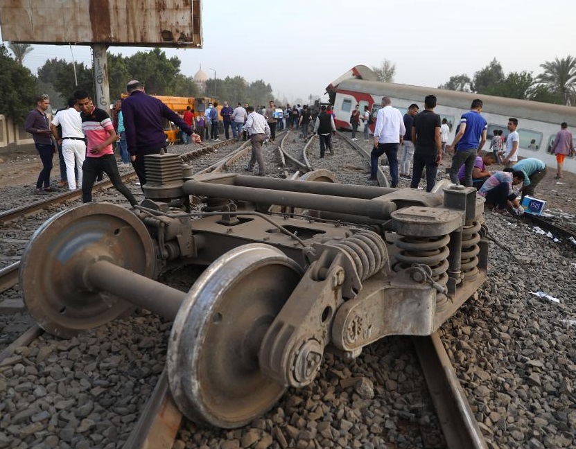 4月18日,在埃及圖赫市,人們聚集在列車脫軌事故現(xiàn)場(chǎng)。