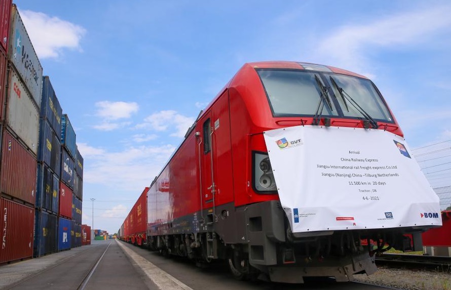 6月4日,首趟從中國江蘇南京至荷蘭蒂爾堡的中歐班列抵達荷蘭蒂爾堡。新華社記者 鄭煥松 攝