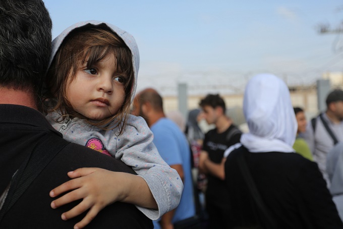 11月8日,人們?cè)诶诎都由骋粋?cè)等待前往埃及。新華社發(fā)(哈立德·奧馬爾攝)