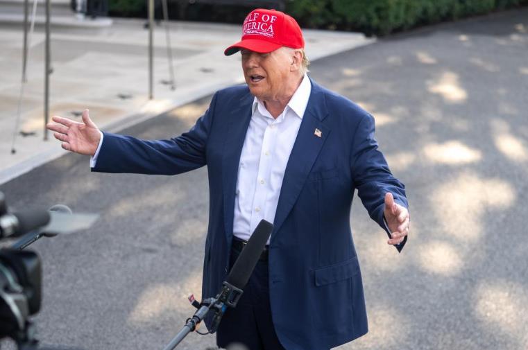 7月1日,在美國首都華盛頓白宮,美國總統(tǒng)特朗普在登機前回答記者提問。新華社記者胡友松攝