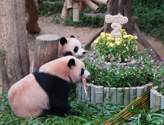 愛(ài)寶樂(lè)園為雙胞胎大熊貓準(zhǔn)備了用竹子制成的大型生日蛋糕,生日禮物則包括清涼的冰床和各類(lèi)用竹子制成的“豐容”玩具等。據(jù)愛(ài)寶樂(lè)園方面介紹,雙胞胎出生時(shí)體重分別只有180克和140克,如今體重都已接近70公斤。