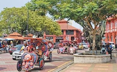 馬來西亞馬六甲古城的大街上,五彩繽紛的三輪車載著游客駛過。人民日報(bào)記者 章念生攝