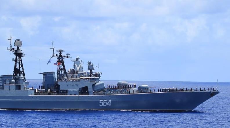 中俄“海上聯(lián)合-2025”聯(lián)合演習(xí)當(dāng)?shù)貢r間1日至5日在俄羅斯符拉迪沃斯托克附近??沼蚺e行。演習(xí)結(jié)束后,參與演習(xí)的中國海軍導(dǎo)彈驅(qū)逐艦紹興艦、綜合補給艦千島湖艦與俄羅斯海軍“特里布茨海軍上將”號大型反潛艦等3艘水面艦艇及2架艦載直升機組成聯(lián)合編隊,位西太平洋某海域組織海上聯(lián)合巡航。