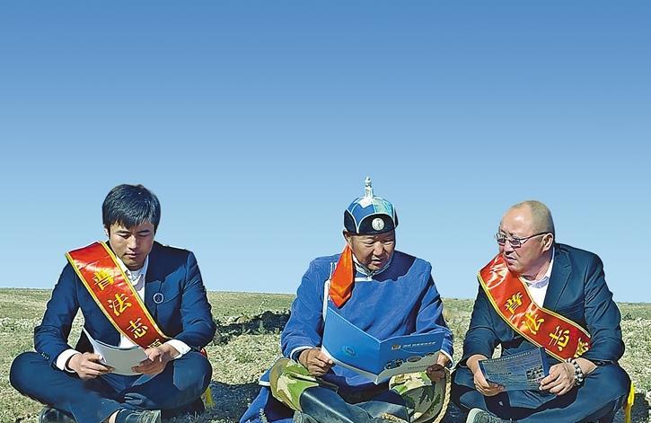 占淑瑩律師(左一)在輝騰錫勒草原為牧民講解法律知識(shí)。