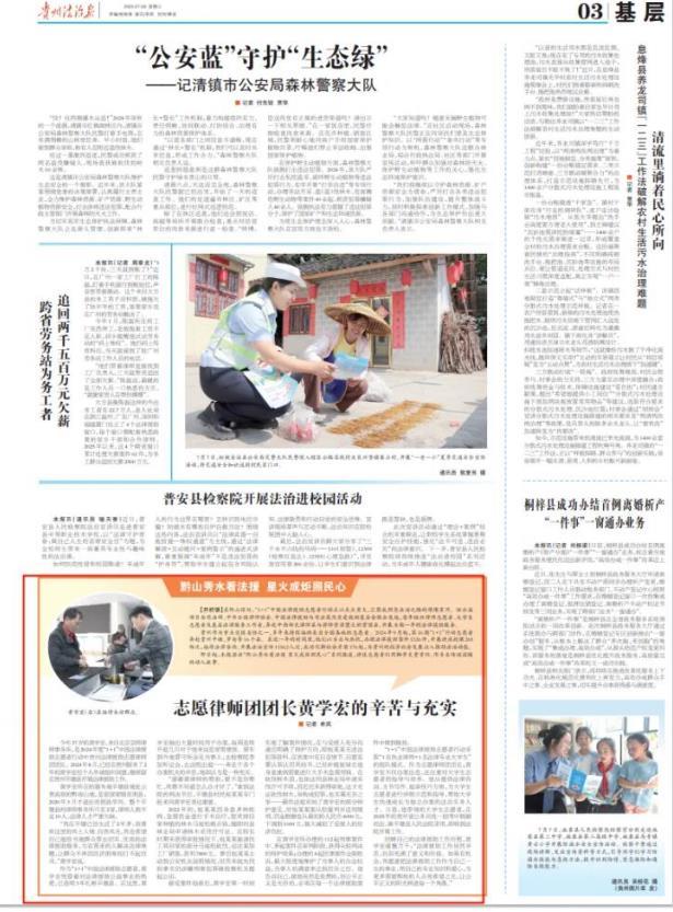 《貴州法治報》開設(shè)的“黔山秀水看法援 星火成炬照民心”專欄。