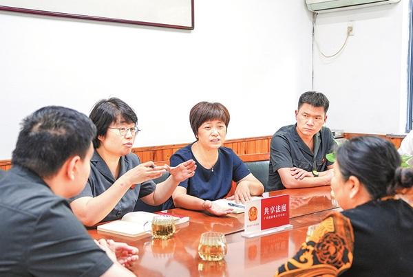 “共享法庭不僅是一個(gè)物理空間,更是一個(gè)制度、一份理念;庭務(wù)主任也不只是一個(gè)職務(wù),而是一種氛圍、一份行動(dòng)?!睏顕?guó)琴有自己的理解,“共享法庭就是讓越來越多人參與到普法、知法、懂法、守法的氛圍里。我特別想在‘家門口’帶動(dòng)這樣的法治氛圍?!保ㄓ嘟ㄈA 潘墨欽)