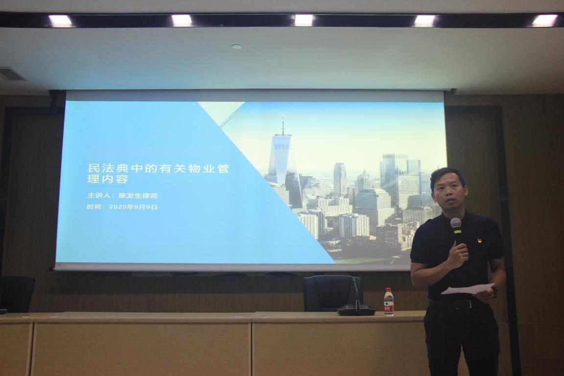 講座上,陳發(fā)生律師結(jié)合即將施行的民法典專編內(nèi)容、《深圳經(jīng)濟(jì)特區(qū)物業(yè)管理?xiàng)l例》中的相關(guān)規(guī)定以及坪山小區(qū)物業(yè)的經(jīng)典實(shí)例講解法律知識(shí)。交流環(huán)節(jié),陳發(fā)生對(duì)居民代表提出的業(yè)主大會(huì)成立問(wèn)題,就業(yè)主大會(huì)籌備流程和工作職責(zé)進(jìn)行了詳細(xì)解答。