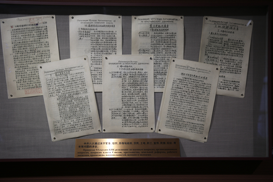 展廳第二部分“中共六大的籌備與召開”中展出的大會(huì)會(huì)場(chǎng)規(guī)則文件。中青報(bào)·中青網(wǎng)駐俄羅斯記者 張?。瘮z