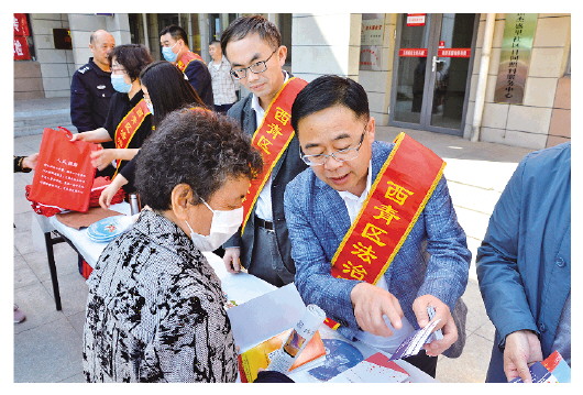 圖為天津市西青區(qū)司法局“法律服務輕騎兵”向群眾介紹便民聯(lián)系卡。法治日報通訊員 張鵬 攝