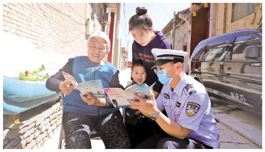 圖為運城公安民警深入農(nóng)村開展道路交通安全宣傳,助力“三零”創(chuàng)建。山西省委政法委供圖