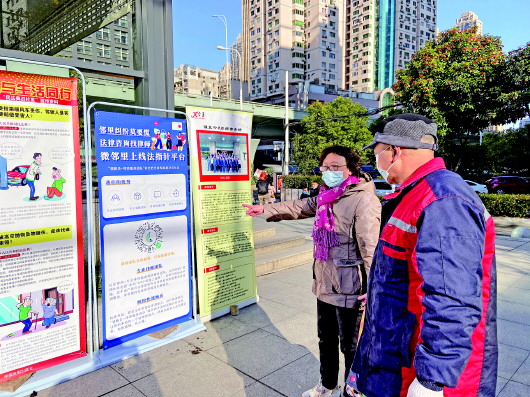 二○二○年十二月三十一日,“武漢市社區(qū)矛盾糾紛調(diào)處化解系統(tǒng)”(“法指針”)正式上線,在全市發(fā)布推廣。圖為武漢市武昌區(qū)居民現(xiàn)場(chǎng)了解“法指針”系統(tǒng)。(資料圖片)