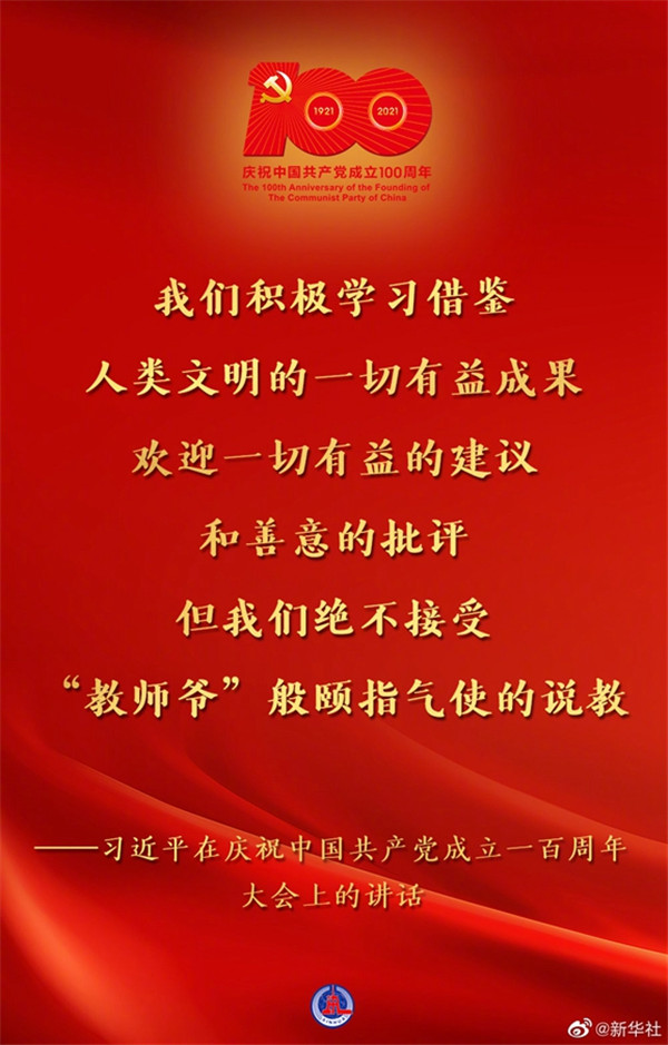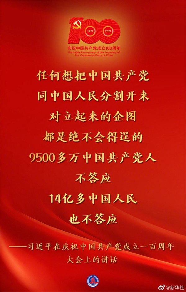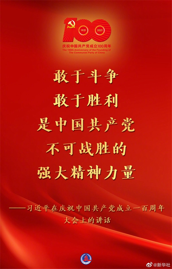 7月1日,慶祝中國共產(chǎn)黨成立一百周年大會在北京隆重舉行,習(xí)近平總書記出席并發(fā)表重要講話??匆c↓