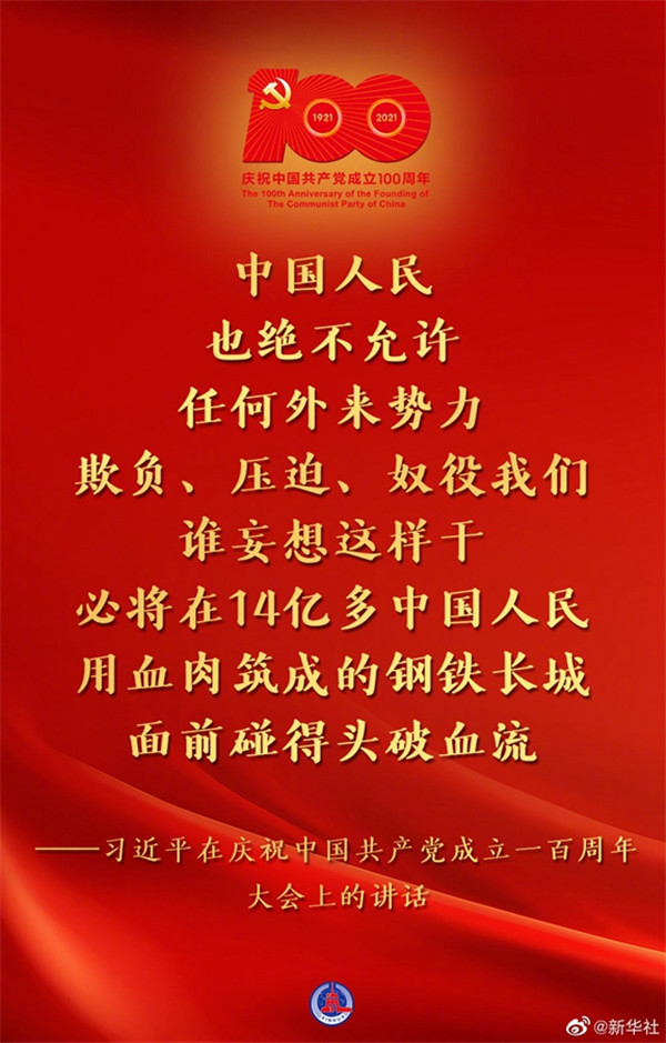 習(xí)近平在慶祝中國共產(chǎn)黨成立一百周年大會上的講話金句