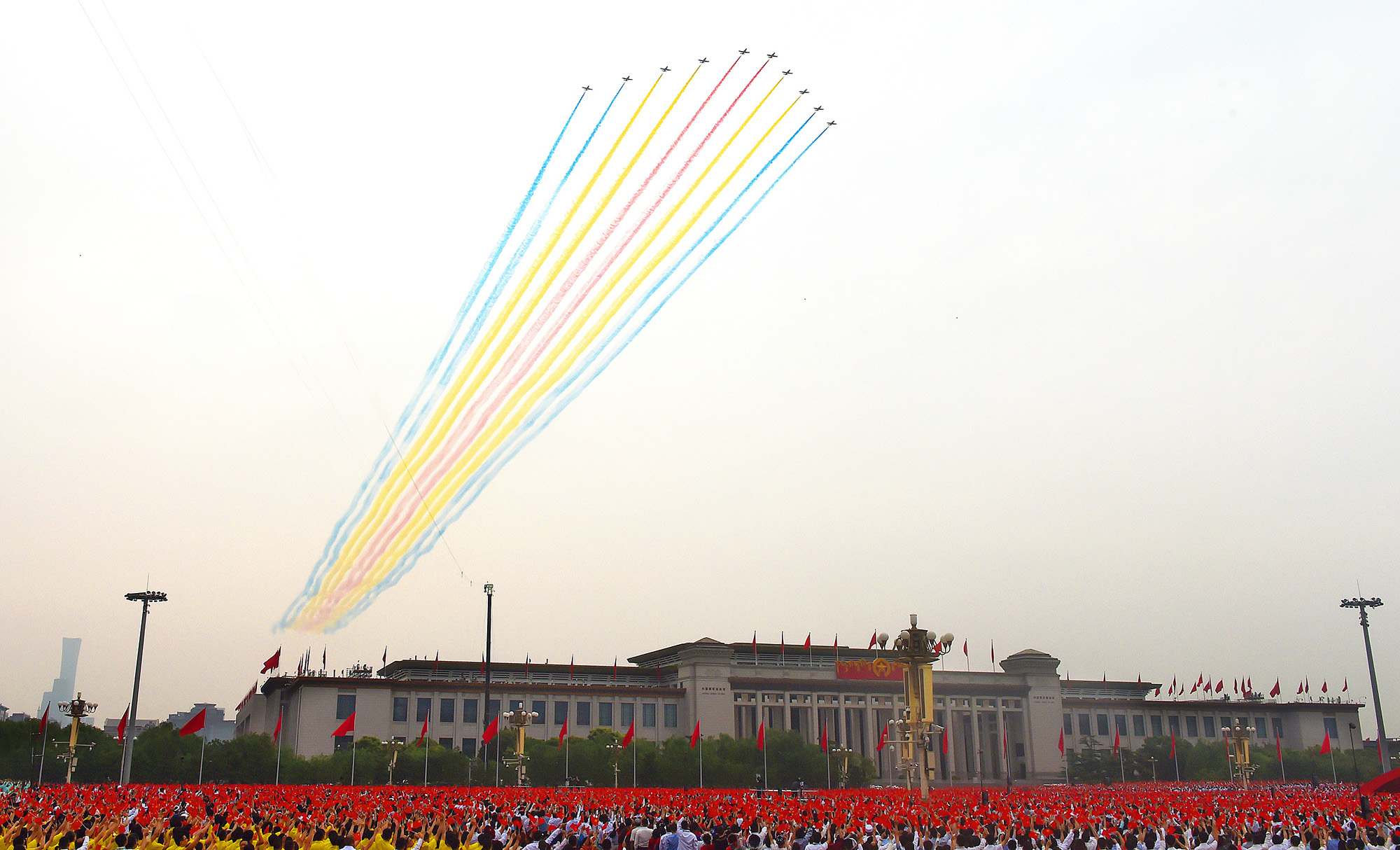 7月1日上午8時(shí),慶祝中國共產(chǎn)黨成立100周年大會在北京天安門廣場隆重舉行。這是飛行慶祝表演。